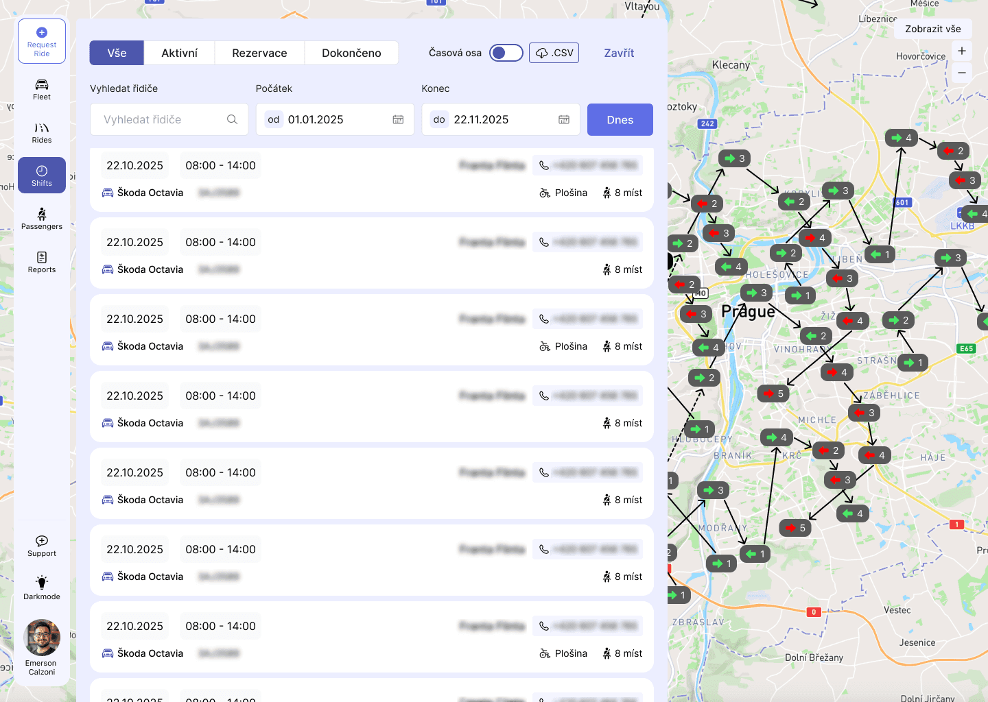CITYA škáluje svoz podle reálných směn a požadavků shuttle systému.